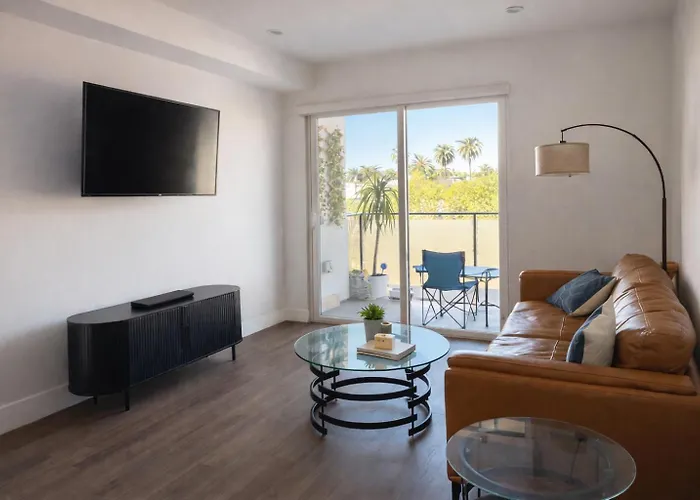 The spacious Modern 1Bed 2Bath Apt In Hollywood With Rooftop Views Los Angeles is located 5 minutes' walk from the Sunset Foot Spa and looks out onto the city. Wi-Fi and a free private car park are provided for guests' utmost comfort.